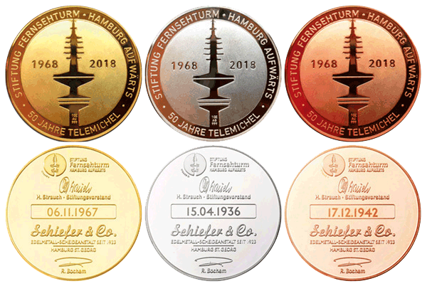 Jede Spendenmedaille wird mit einer nur einmal je Metall verwendeten fortlaufenden Nummer geprägt oder auf Wunsch mit einem Datum, das nur einmal vergeben wird. Die Medaillen sind in Gold, Silber und Kupfer bei der Firma Schiefer & Co erhältlich.